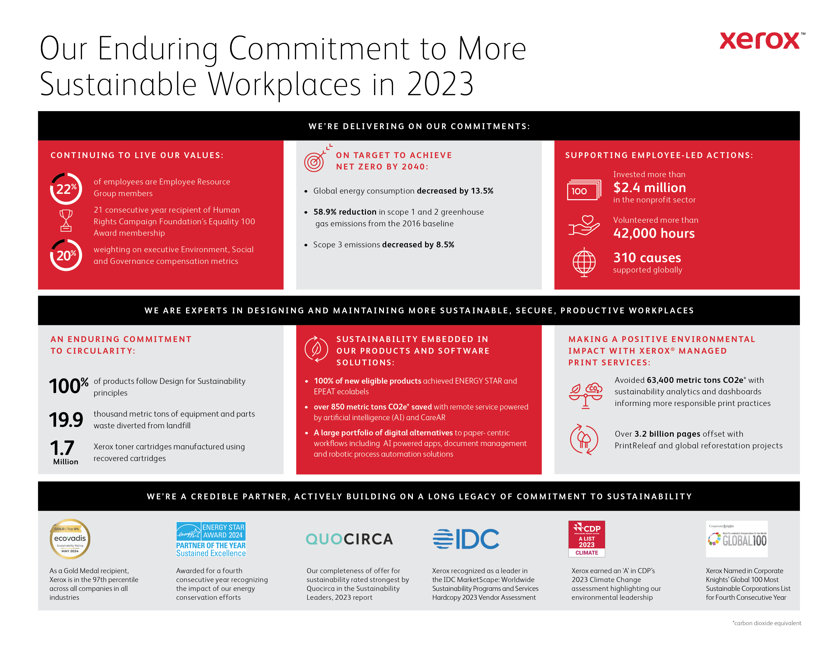 Xerox, with a legacy of innovation that helps make the world a more sustainable place, is honored to have received the 2024 ENERGY STAR® Partner of the Year Award.